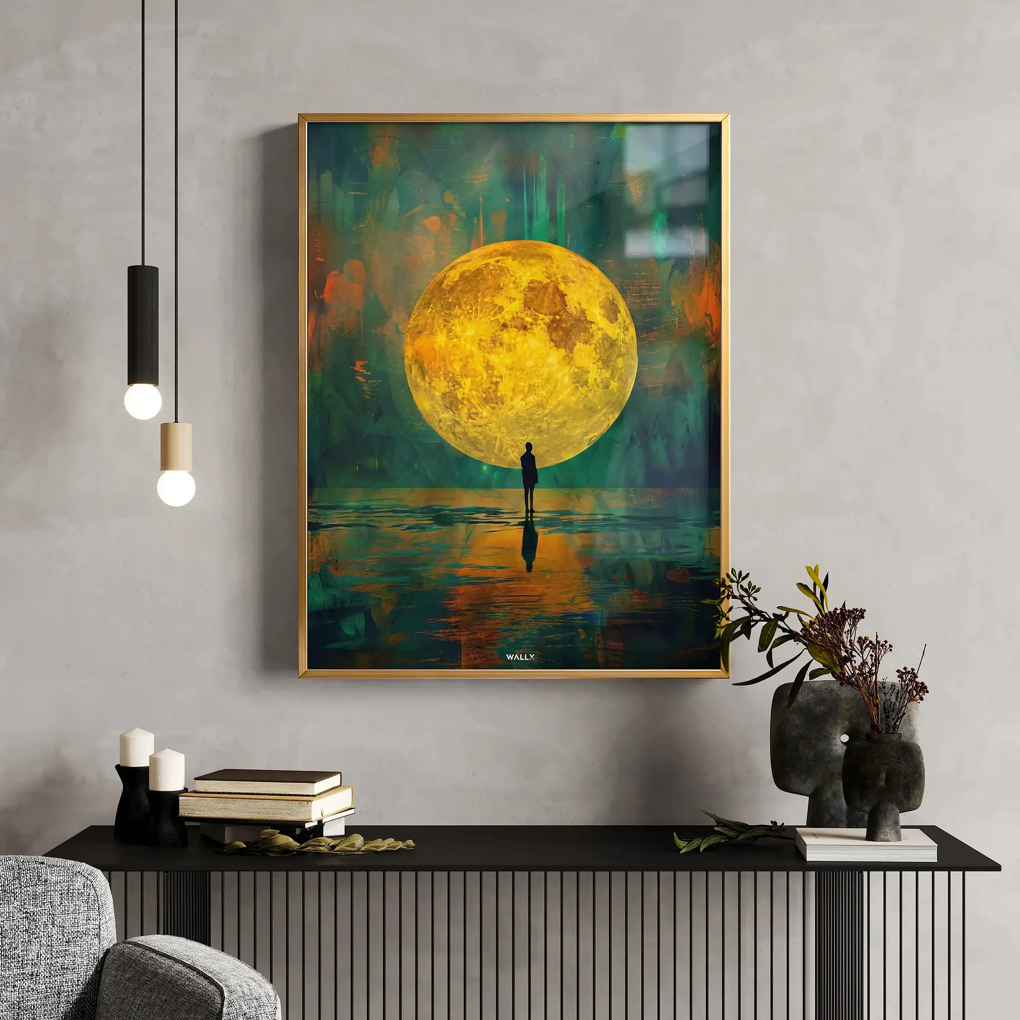 Elevate your space with “Lunar Reflection” – a stunning High Quailty printed acrylic artwork featuring a surreal moonlit scene, encased in a luxurious golden aluminum frame. Perfect for modern interiors, this premium wall decor blends elegance, durability, and artistic wonder. Ideal for living rooms, offices, and gifting. Shop now for timeless beauty.