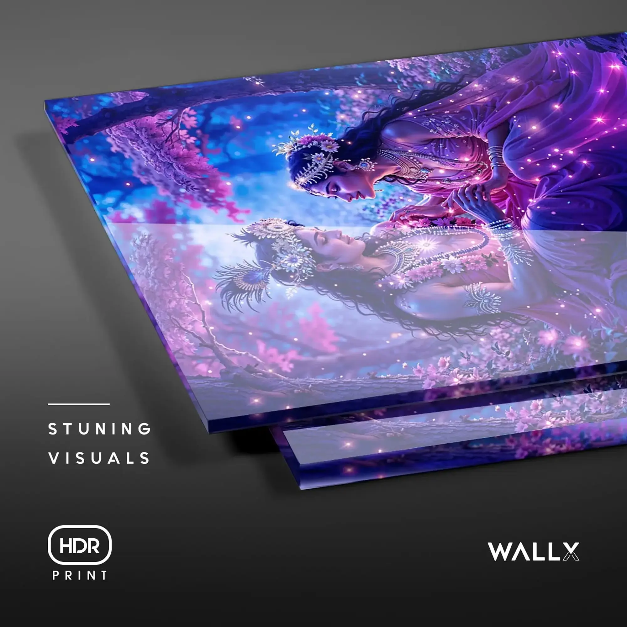 Bring divine energy to your home with this Radha Krishna Acrylic Wall Poster. Featuring vivid purple tones and sacred Pooja Mandir design, this Hindu wall art adds elegance and spirituality to any space. Perfect for temple decor, living rooms, or gifting. Shop premium acrylic posters online at TheWallX.