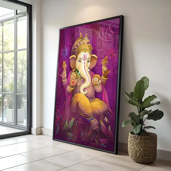 Ganesh Artistic Serene Purple Vivid Framed Wall Art